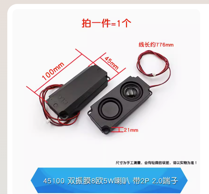 45100 双振膜8欧5W喇叭 带2P 2.0端子