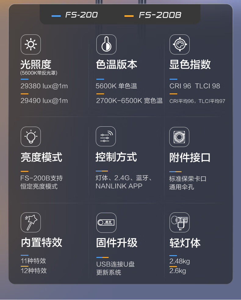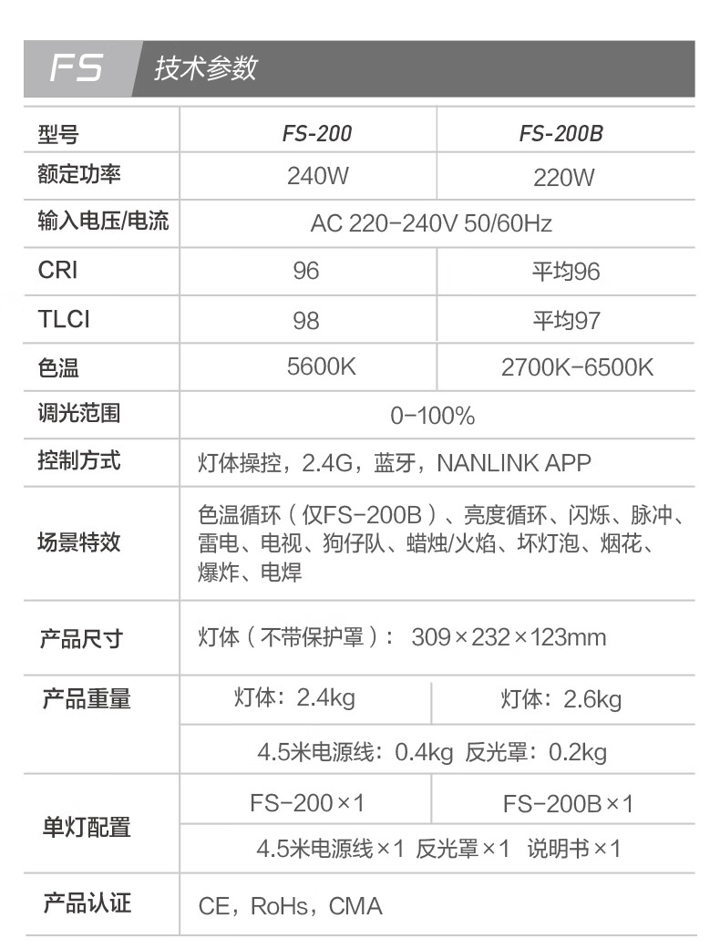 FS-200B+90*60四角柔光箱(格栅)+灯架