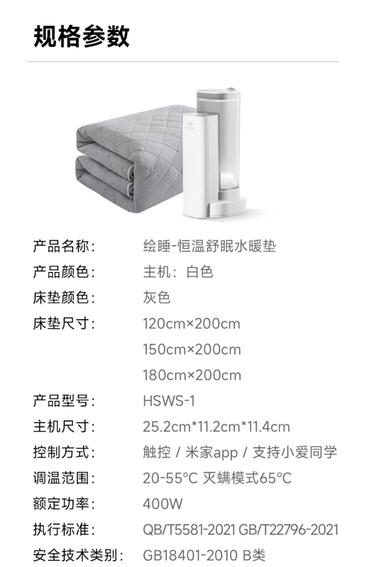 营业部-BU12小米客户付费设备:绘睡水暖垫HSWS-1