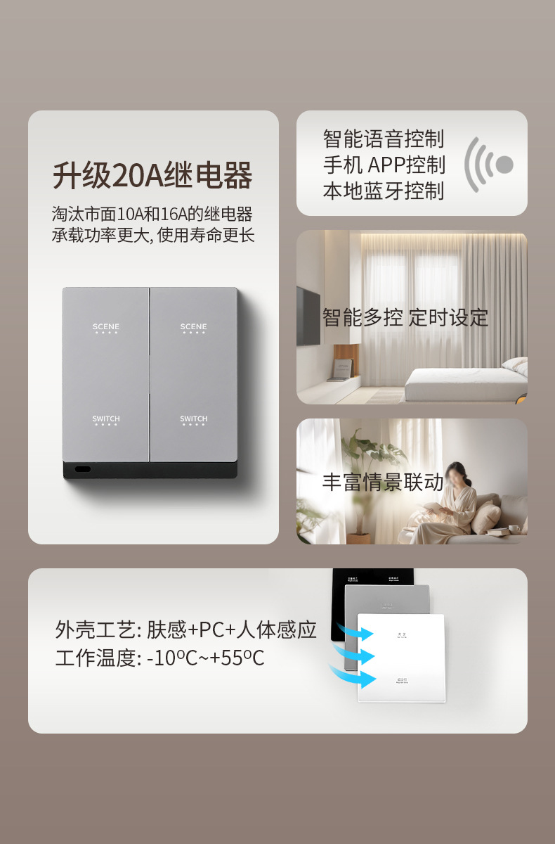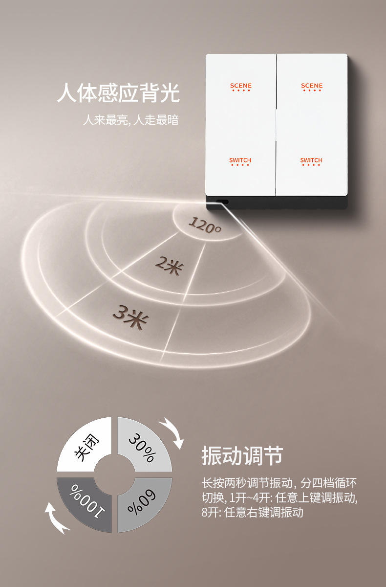 4开复合款铝材拉丝/背光感应+振动触感 零火版