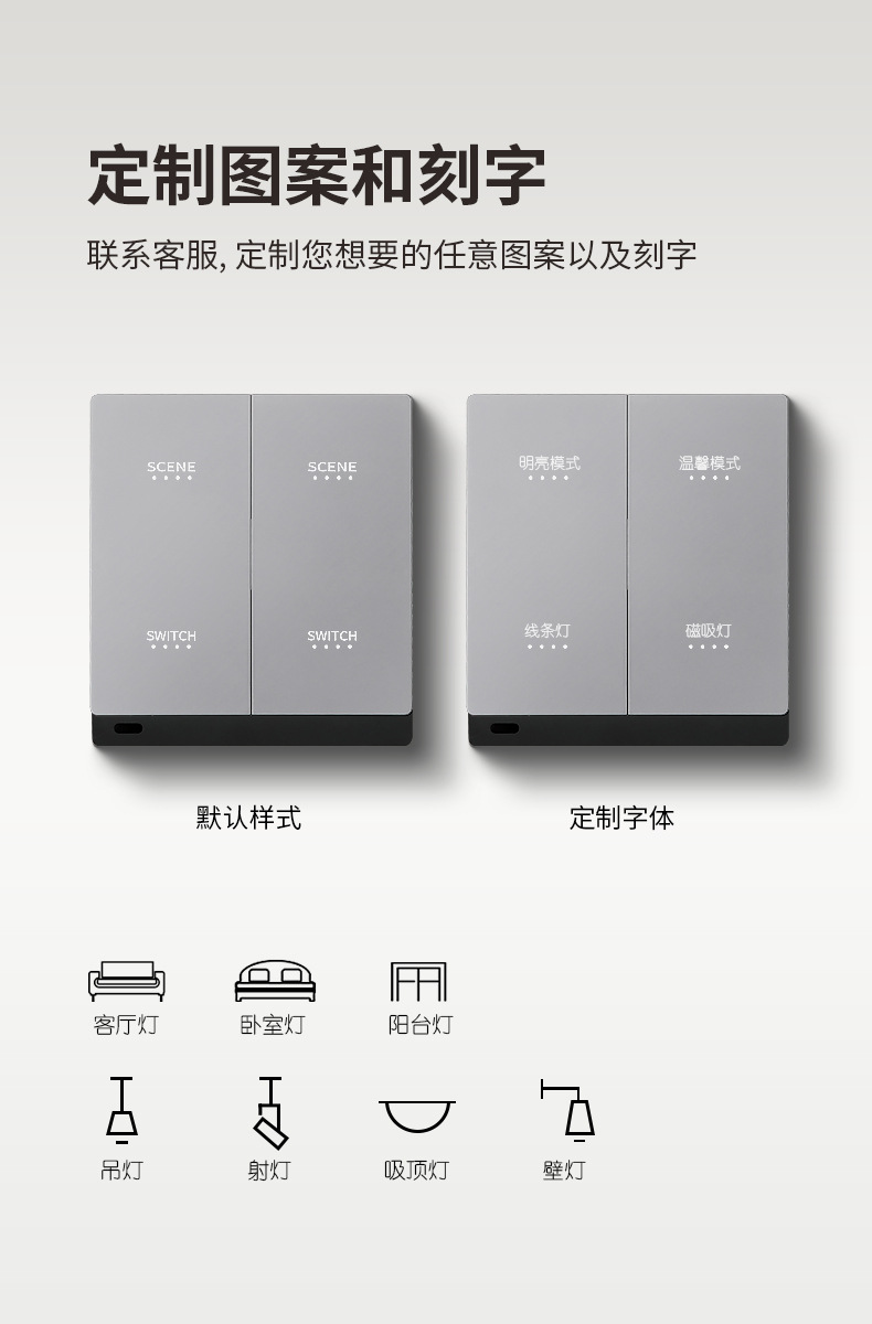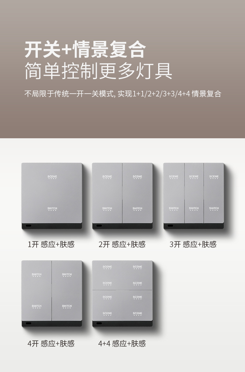 4+4复合款铝材拉丝/背光感应+振动触感 零火版