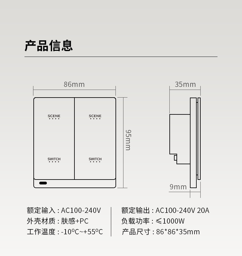4+4复合款玻璃灰色/背光感应+振动触感 零火版