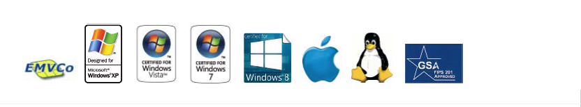 EMV 2008 Ver 4.2 Level 1, ISO/IEC 7816, USB 2.0 Full Speed, CCID,