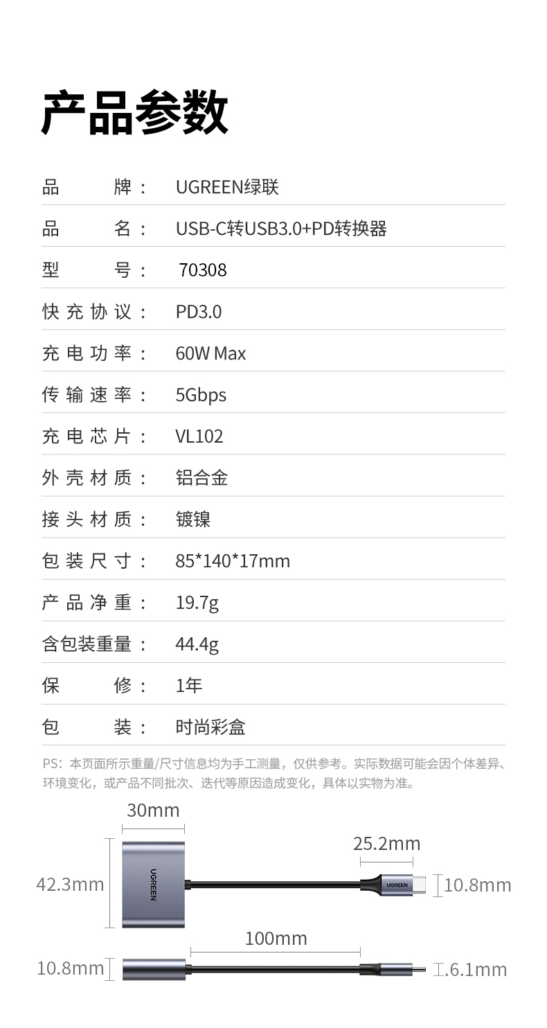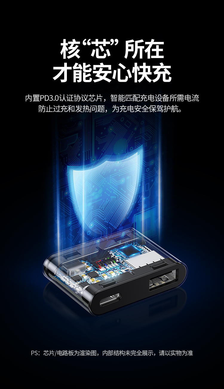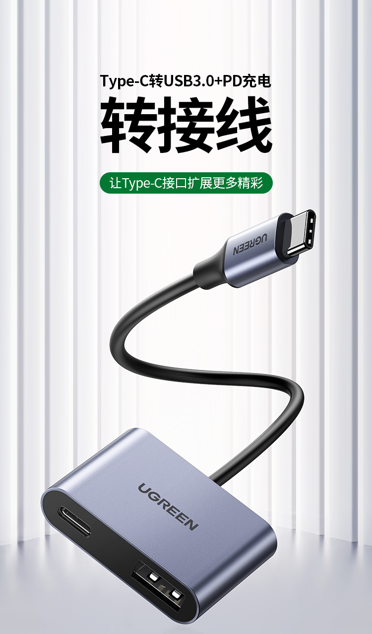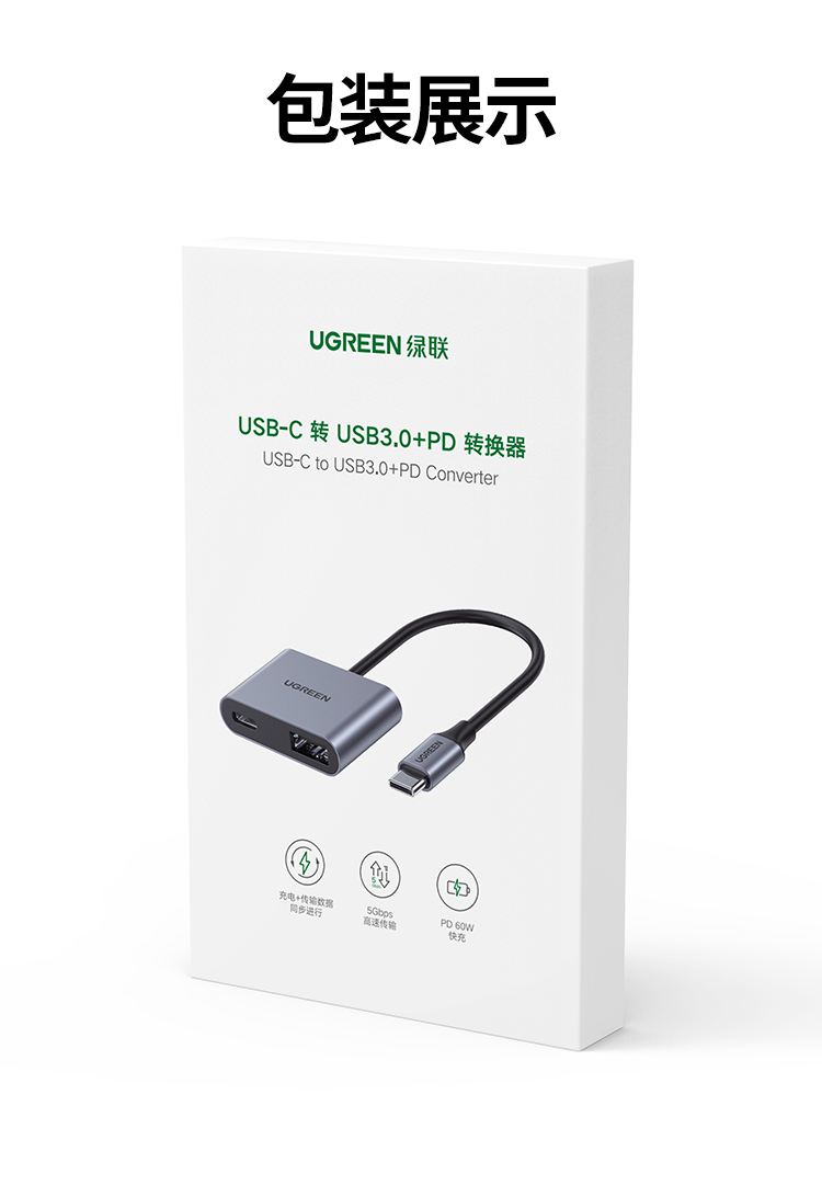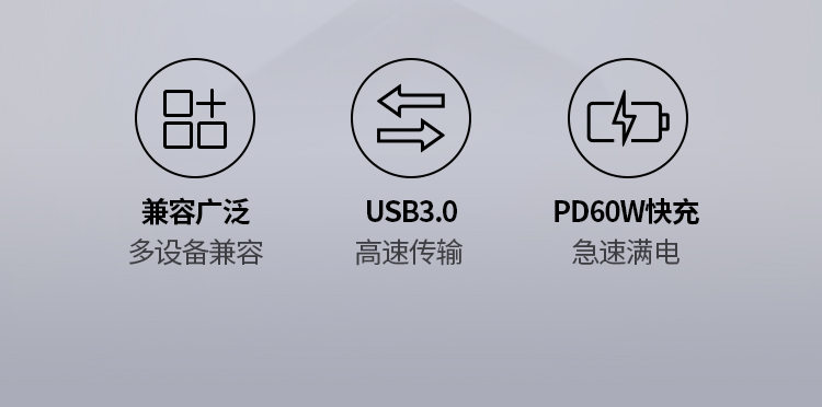 Type-C转USB3.0+PD60W快充