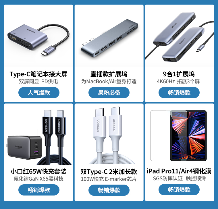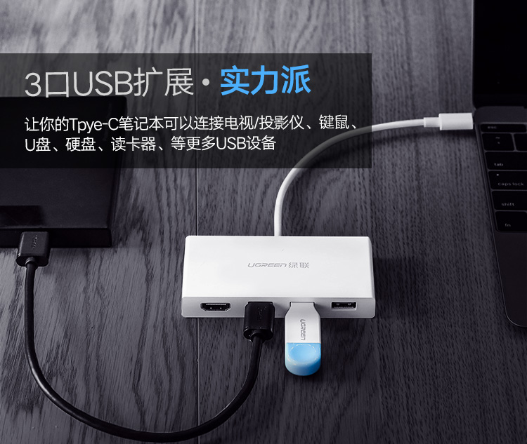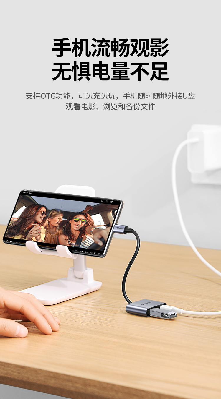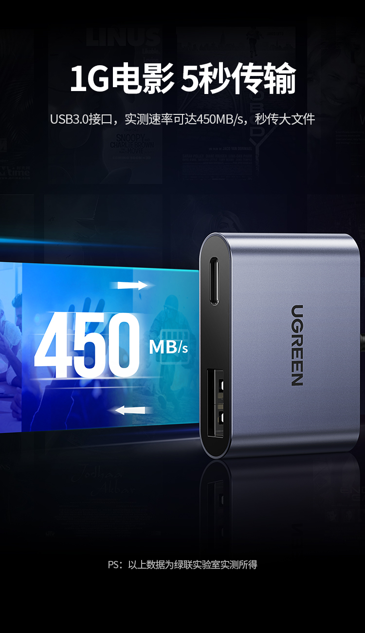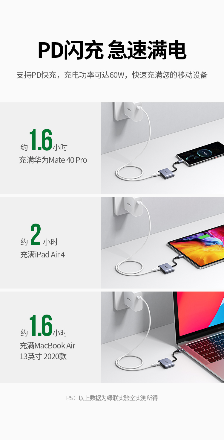 Type-C转USB3.0+PD60W快充